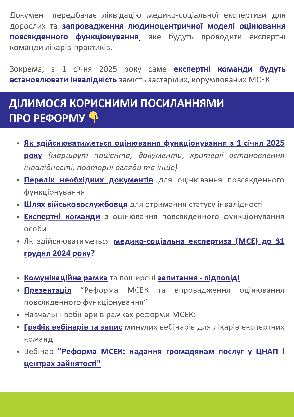 Реформа МСЕК та впровадження оцінювання функціонування